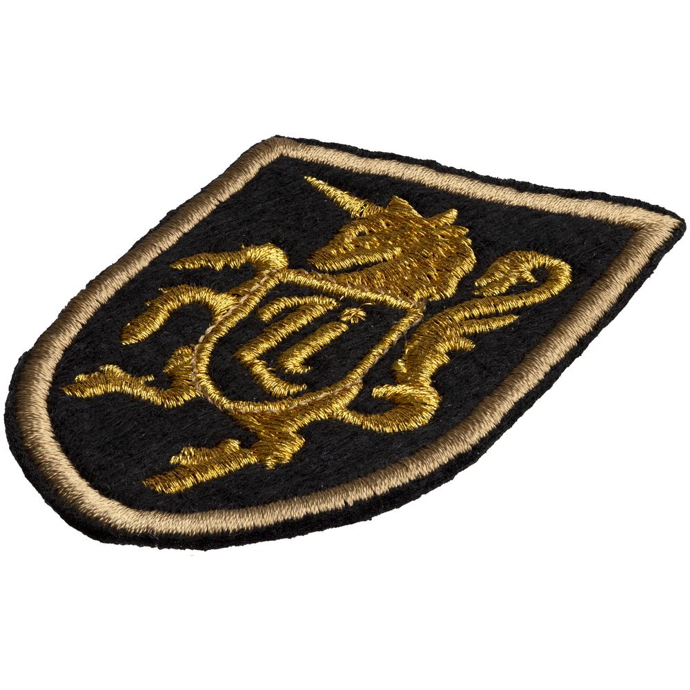 Вышивной шеврон на тканой (габардин) или фетровой основе площадью 26–50 см² (например,5х6, 4х7, 4х10 см).