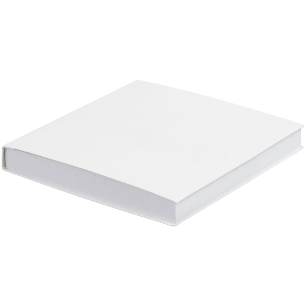 Блок из 100 листов без линовки из бумаги плотностью 80 г/м² на склейке в обложке из дизайнерского картона белого цвета.