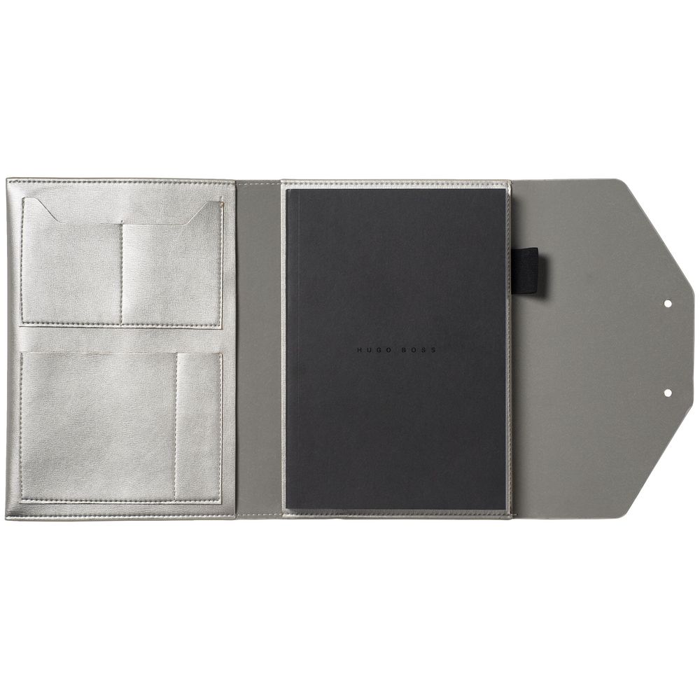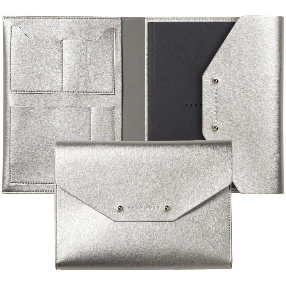 Папка особенно подойдет представителям творческих профессий. Она выглядит одновременно минималистично и конструктивно, элегантно и очень современно благодаря необычной конструкции и использованному металлизированному материалу.