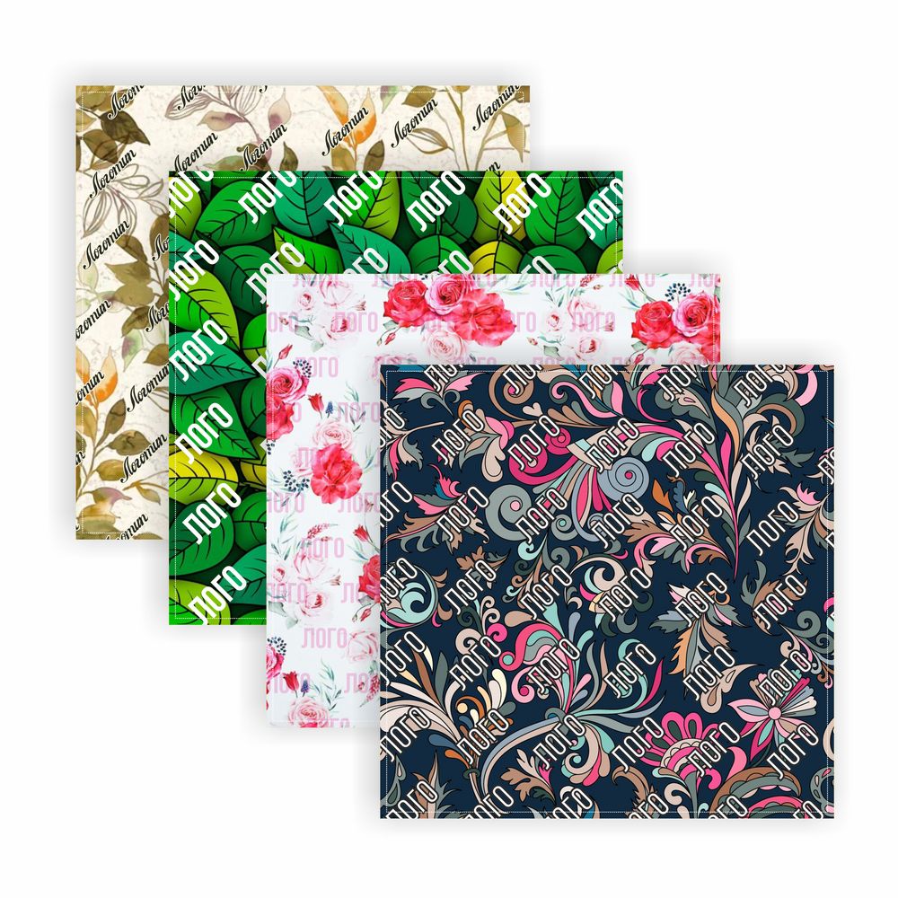 Платок может быть выполнен из шармуса, мокрого шелка или искусственного шифона, подходящих для сублимационной печати. Края обработаны оверлоком.