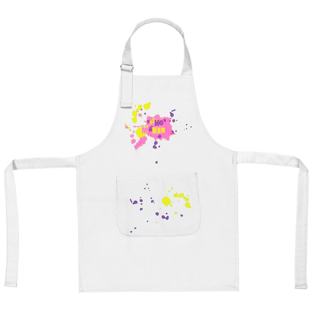 Детский фартук «Пятно Maker». Он заранее украшен цветными кляксами, чтобы ребенок точно не переживал, если вдруг его испачкает. Ведь он специально для того и создан — дарить радость чистого творчества!Фартук с регулируемой лямкой и двойным карманом.