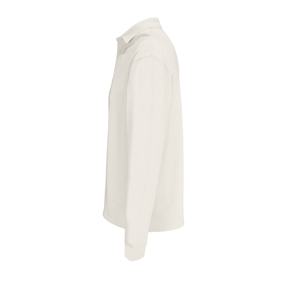 Рубашка поло из футера с длинным рукавом и спущенным плечом.