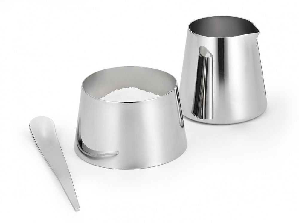 сахарница: 6,5х6,5х4 см; сливочник: 5,4х5,4х5,5 см; длина ложки 11 см; коробка: 16,5х10,5х6,5 см