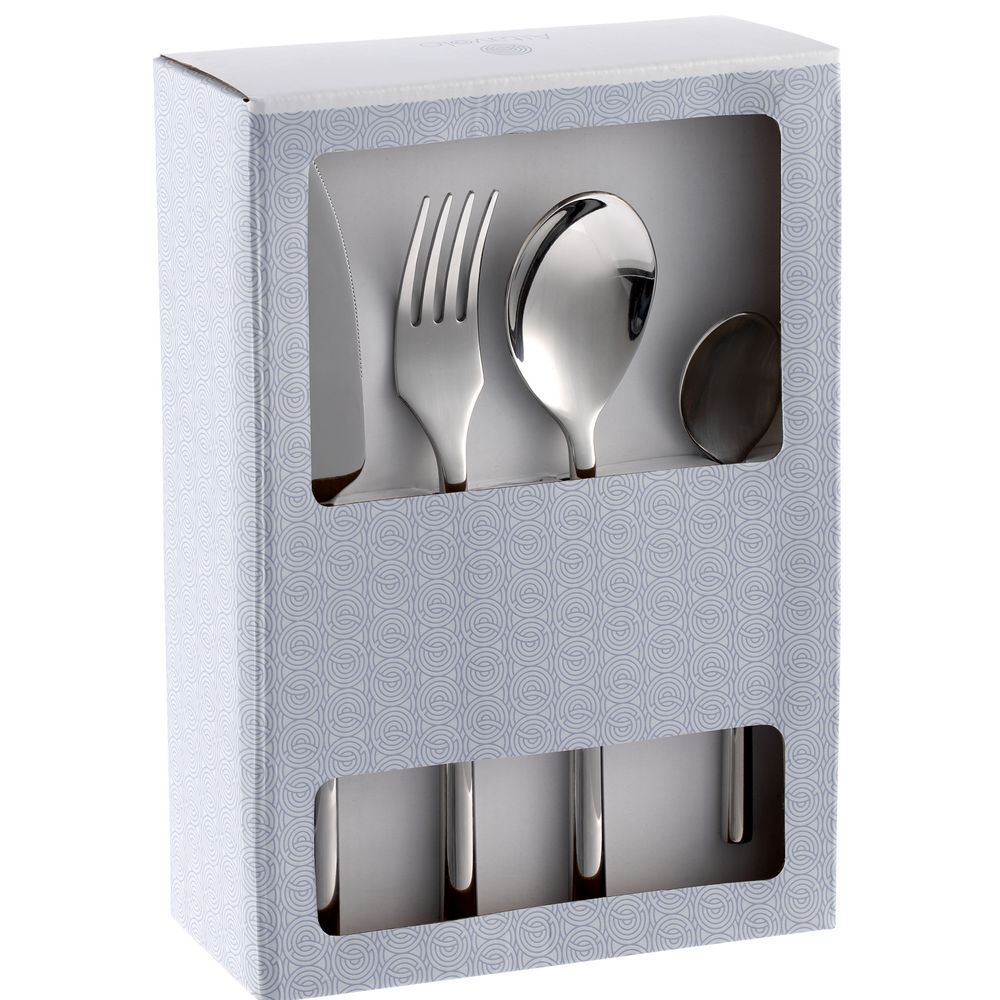 Набор столовых приборов Galateo на шесть персон включает в себя 24 предмета: 6 ножей, 6 вилок, 6 столовых ложек, 6 чайных ложек.