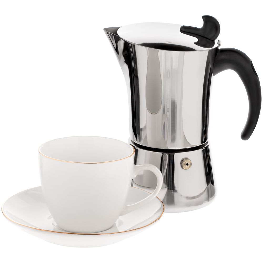 Емкость чашки 220 мл.Емкость кофеварки 240 мл. На шесть порций эспрессо.