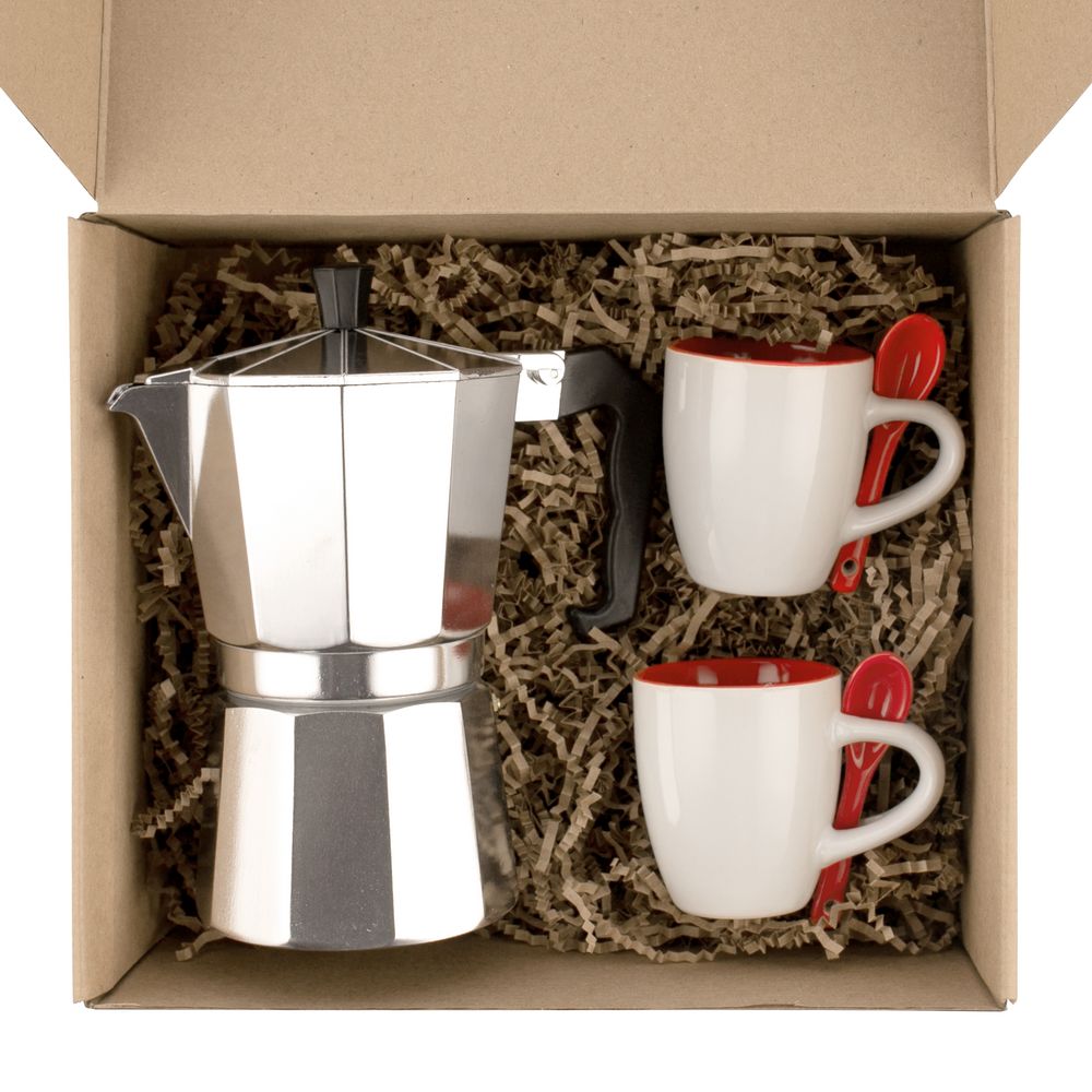 кружка: диаметр 5,8 см, высота 6,9 см; ложка: 8,5x2 см; кофеварка: высота 19 см, диаметр 10 см, ширина с ручкой 17 см; коробка 25,3х21,2х11,4 см
