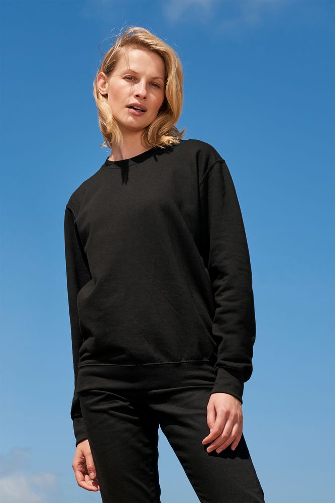 Свитшот унисекс из хлопка и переработанного полиэстера с круглым вырезом и втачным рукавом.